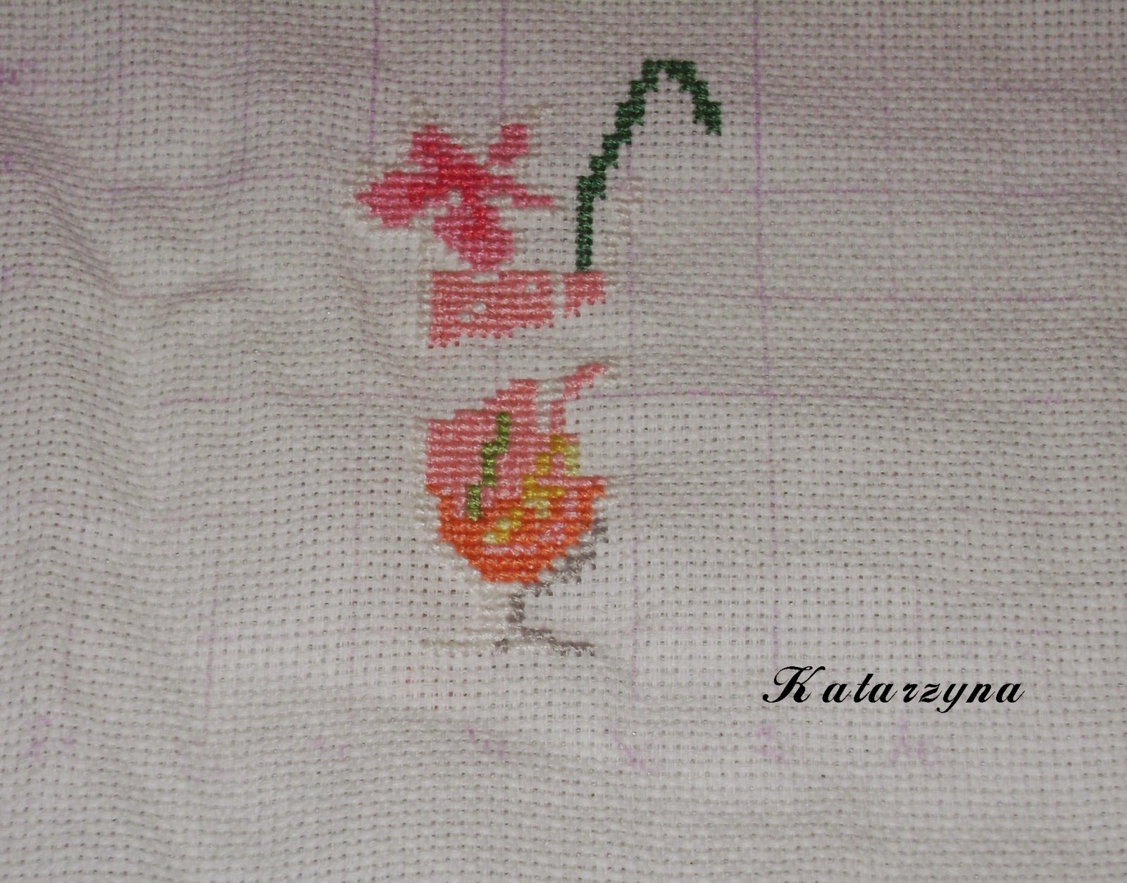 Dziś będzie coś relaksującego. Jak już pisałam zapisałam się na sal koktajlowy u Asi B. No i dziś powstał pierwszy drink z tego salu - Singapore Sling. Wyszywało mi się go bardzo przyjemnie, ale jak zwykle cały mój humor popsuły backstitche - nie cierpię ich i nie umiem... Ale niestety w tym wzorze są one niezbędne, więc rada nie rada musiałam je zrobić...